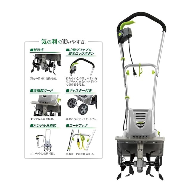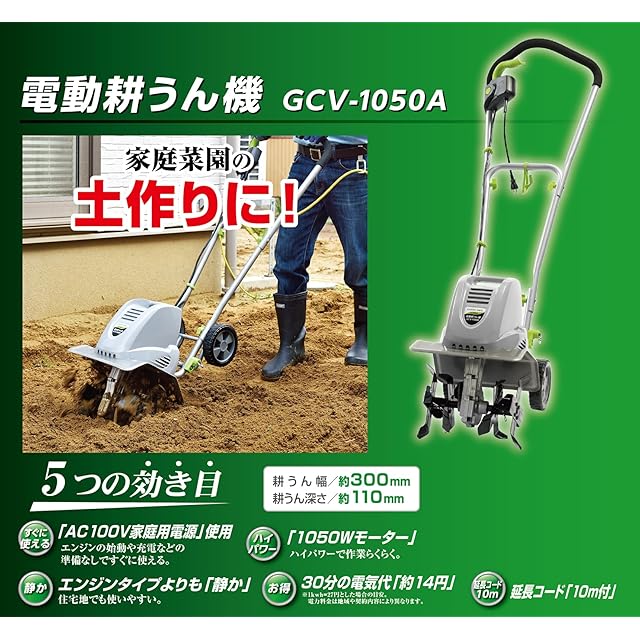 高儀(Takagi) EARTH MAN 電動耕うん機 1050Wハイパワー GCV-1050A 【10m延長コード付】【エンジン始動の手間いらず、すぐに使えて静か】家庭菜園 耕運機 家庭用 電動耕運機 耕うん機