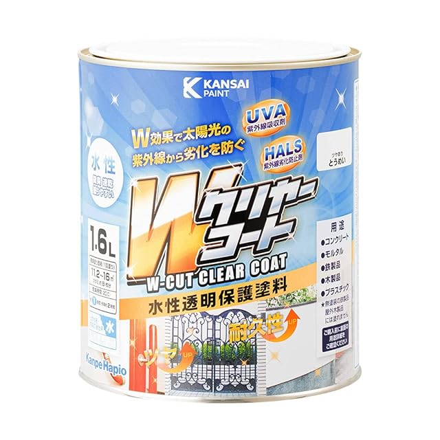 カンペハピオ(Kanpe Hapio) ペンキ 塗料 水性 つやあり 多用途 紫外線 高耐久 防カビ剤入り 防さび剤入り Wカットクリヤーコート とうめい 1.6L 日本製 00187654001016