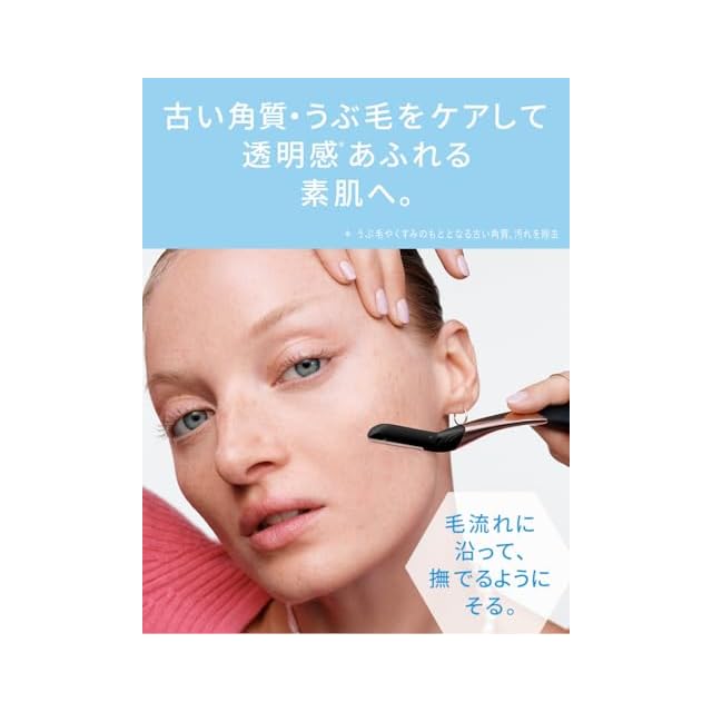 「6枚刃で角質もやさしくケア。透明感あふれる素肌へ。」