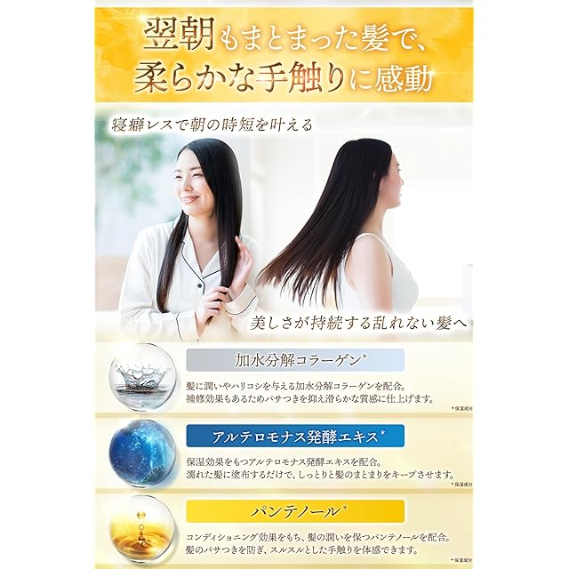 ✅【豊富な保湿成分】加水分解コラーゲンやパンテノールなど豊富な保湿成分を配合。しっとりと柔らかい髪をキープさせることで、パサつきを軽減させツヤのある美しい髪に仕上げます。