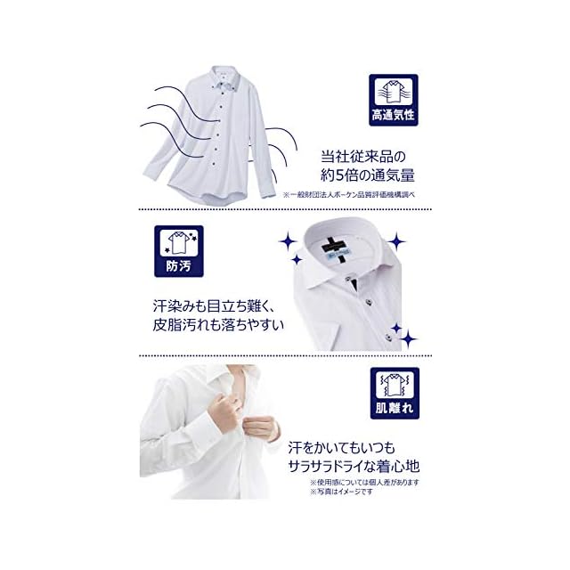 [アイシャツ] i-shirt 完全ノーアイロン ストレッチ 超速乾 レギュラーフィット 長袖 アイシャツ ワイシャツ メンズ ホワイト 無地 ハイゲージモデル 新レギュラーフィット 長袖レギュラーカラー M15120003701 L84(首回り41cm裄丈84cm)